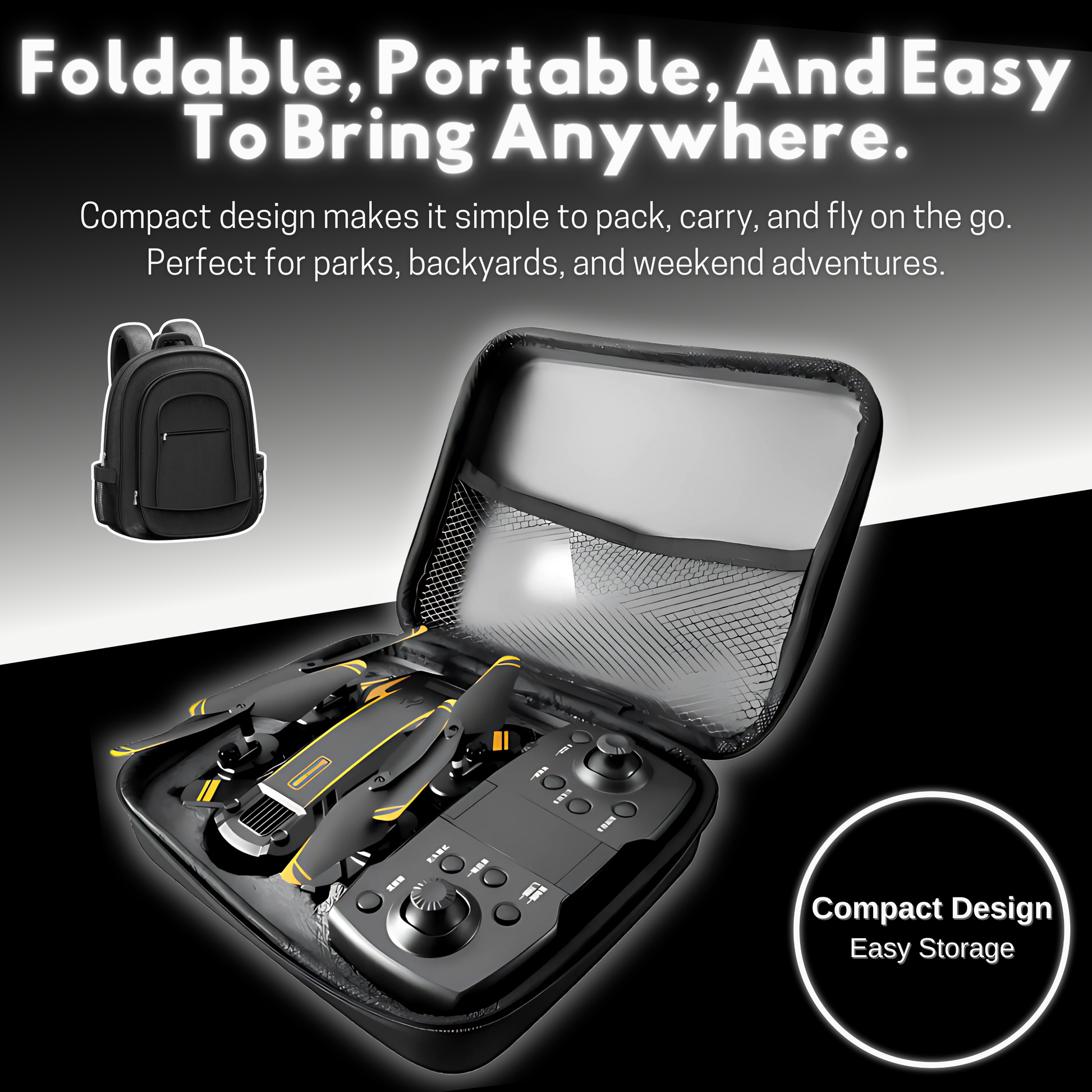 🕹️ Beginner Controls That Make Every Flight Feel Effortless: When you’re new, controlling a drone can feel like arguing with a stubborn shopping cart. This one plays nice. Altitude hold keeps it steady. The directional guidance helps you understand where the craft is facing so you don’t panic-spin into a bush. And the “return” helper points it back toward you when your brain goes blank. Perfect for beginners learning in parks, driveways, backyards, or anywhere you want to practice without sweating bullets.